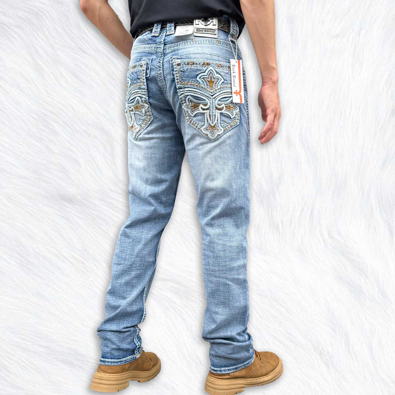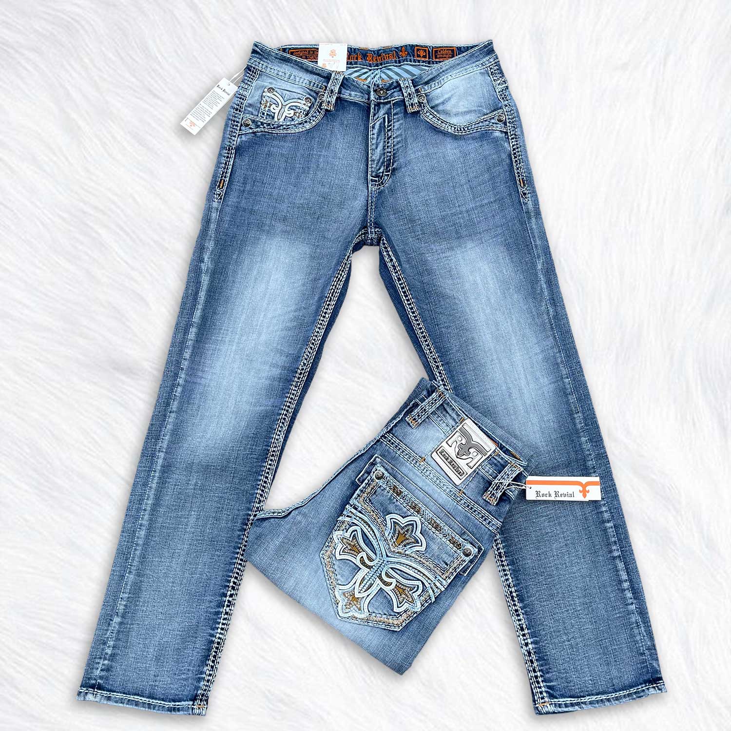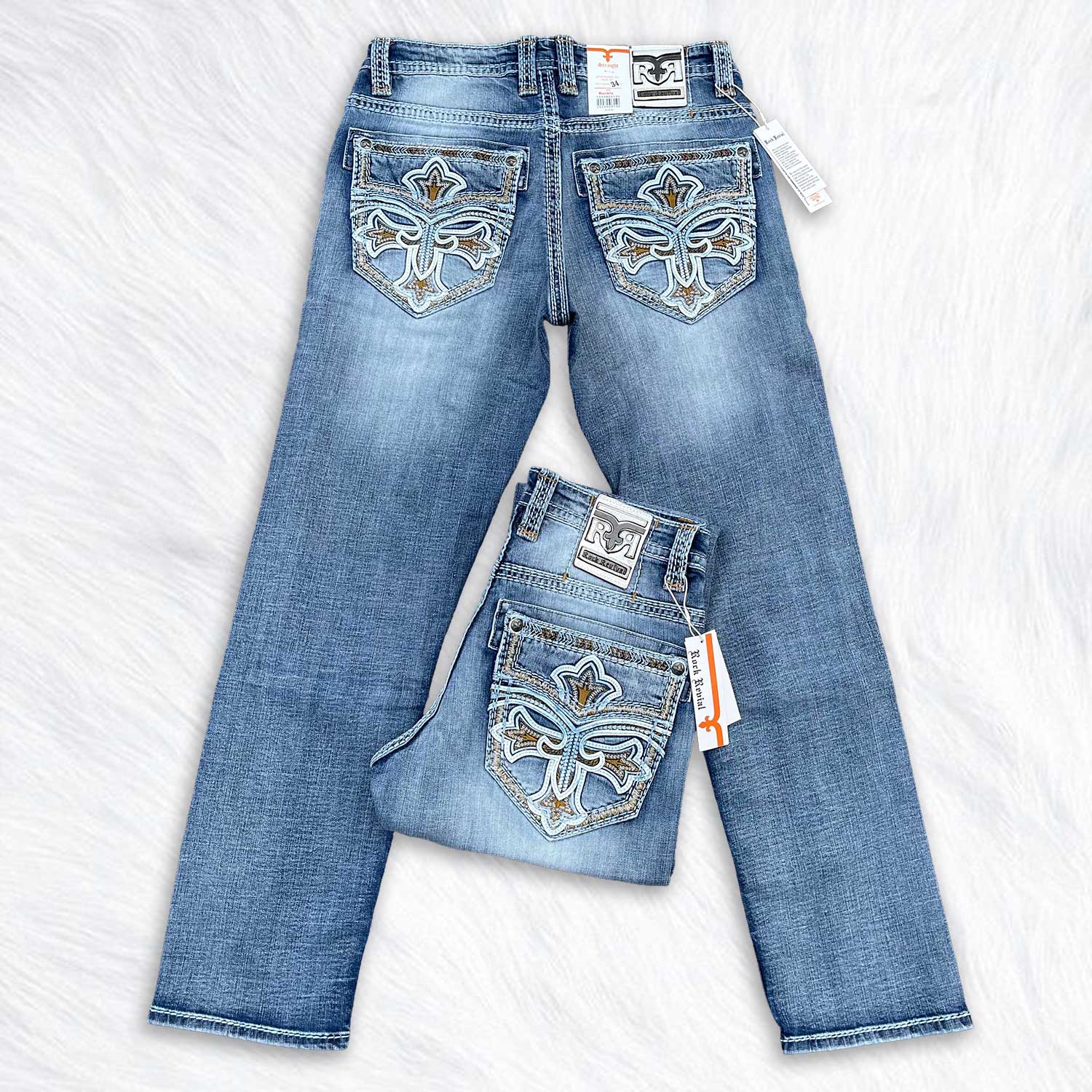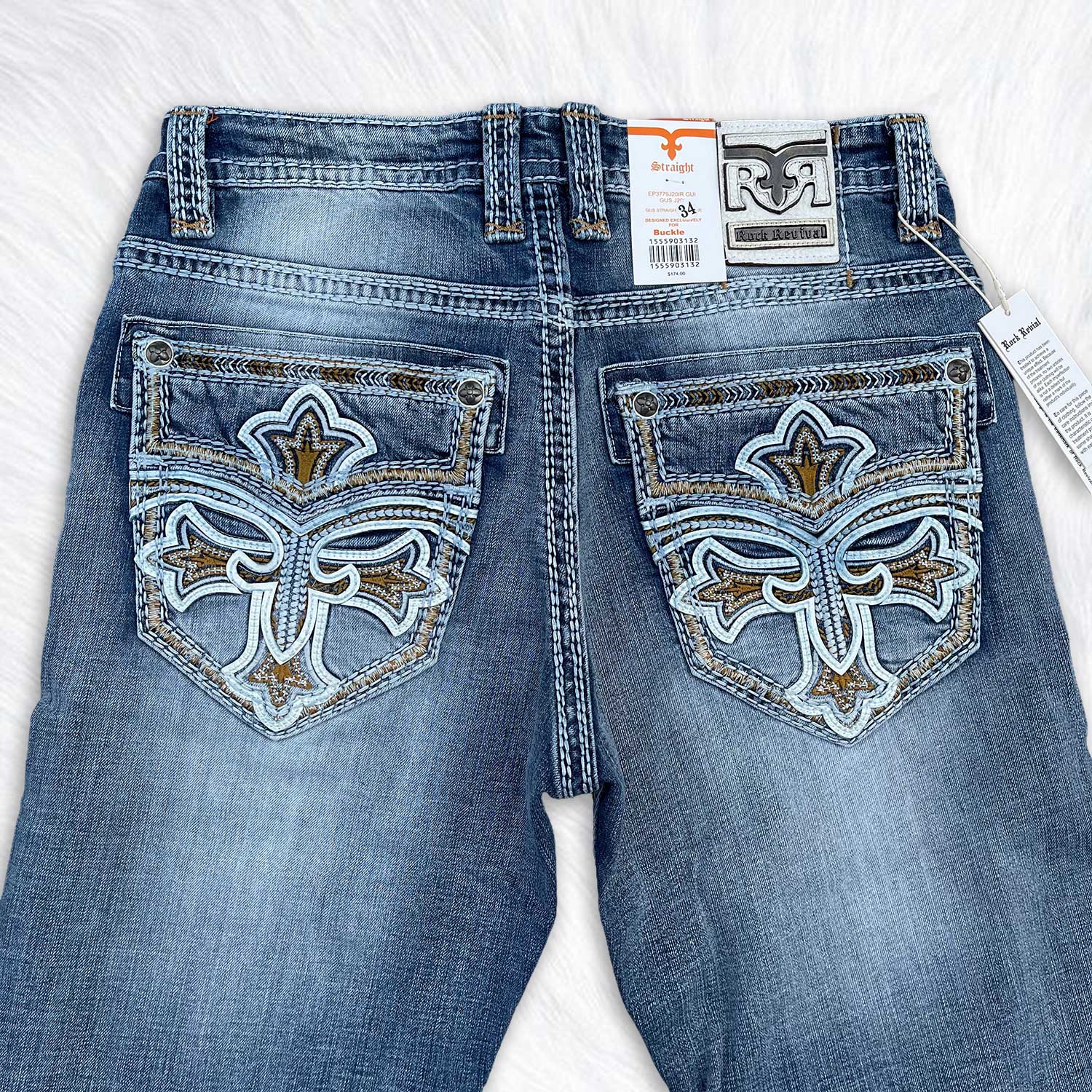 Signature raised embroidery on the back pockets
